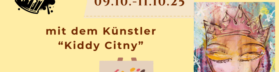 Vom 9.–11. Oktober 2025 verwandelt sich unser Jugendtreff Güterschuppen in eine interaktive Kunstwerkstatt! Gemeinsam mit dem international bekannten Künstler Kiddy Citny – berühmt durch seine Werke auf der Berliner Mauer – können Jugendliche (12–16 Jahre) eigene Ideen entwickeln und lernen ihre Werke mit Graffiti & Wandmalerei großflächig umzusetzen.