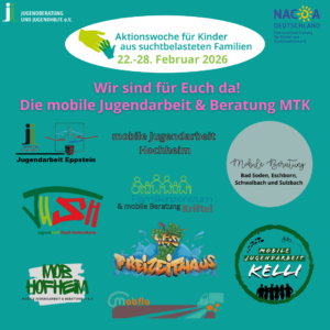 Auch wir von mobflo gemeinsam mit unseren KollegInnen der Mobilen Jugendarbeit & Beratungstellen vom Zentrum für Jugendberatung und Suchthilfe im Main-Taunus-Kreis wollen auf die Aktionswoche aufmerksam machen.